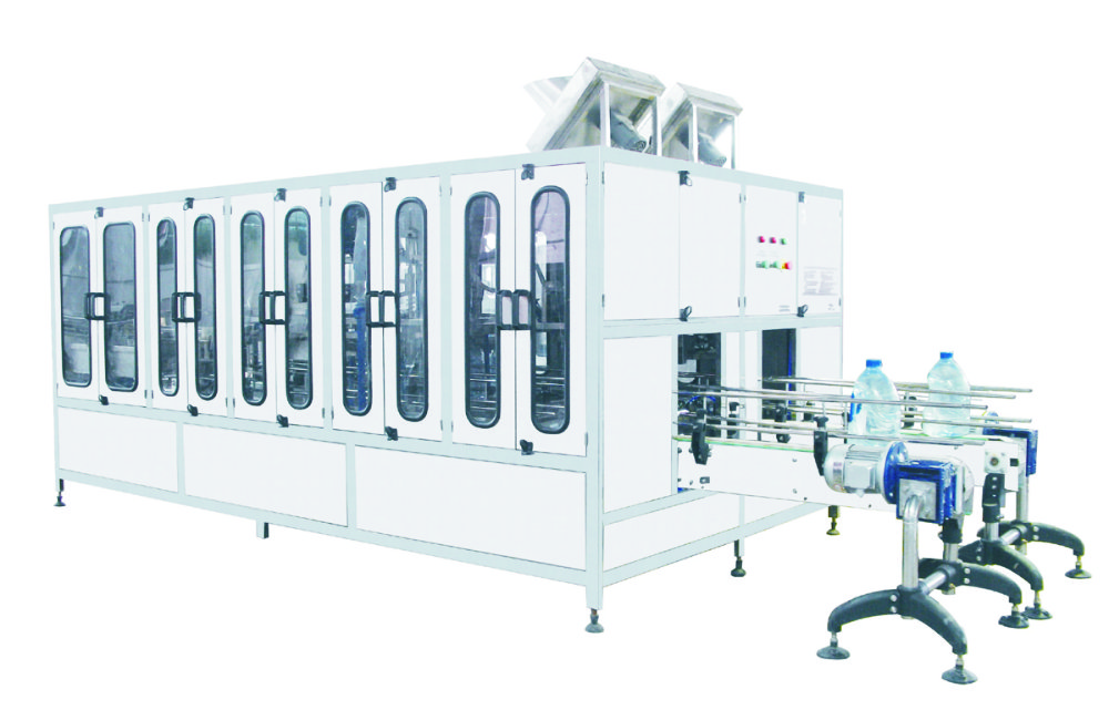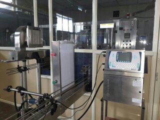 The machine is designed to fill and seal glass bottles of various sizes and shapes, including cylindrical,